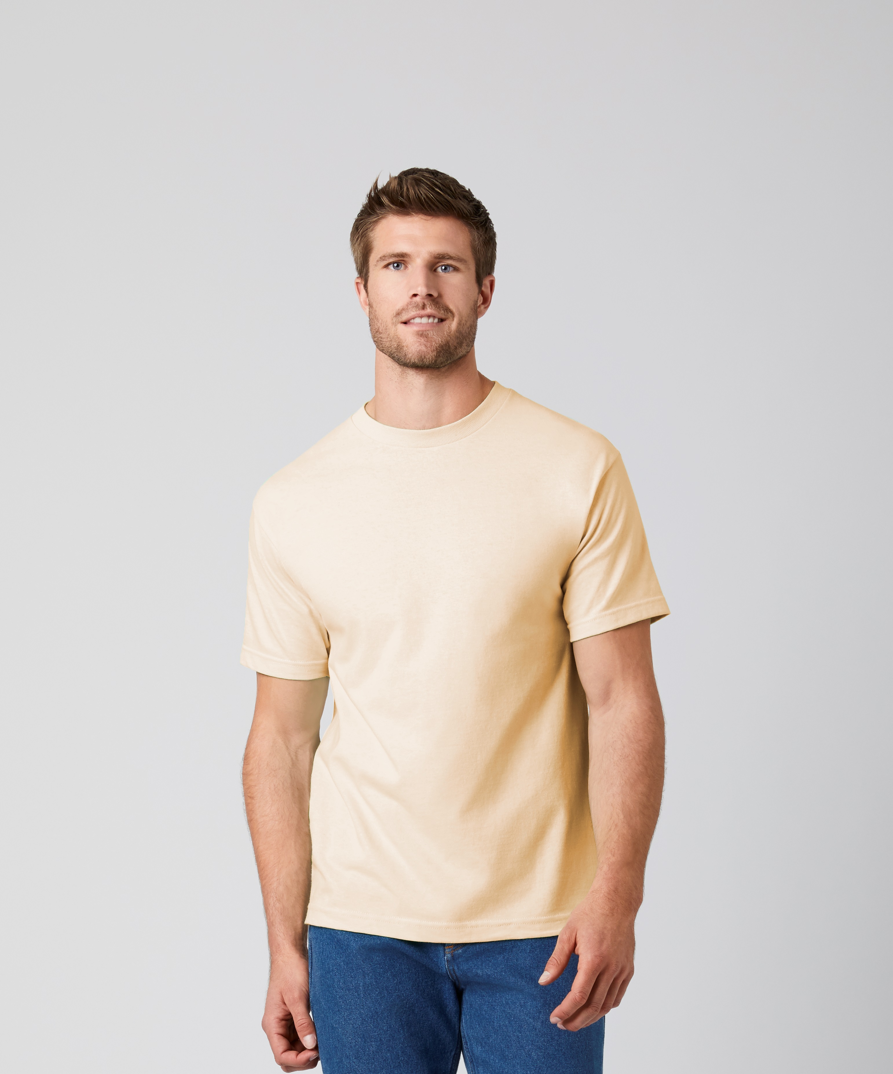 203 g/m² (193 g/m² in White) 100% Cotton preshrunk jersey knit