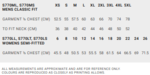 | CHEST | 57 | 59 | 61 | 63.5 | 66 | 69.5 | 72.5 | 75.5 | 78.5 | 84.5 |